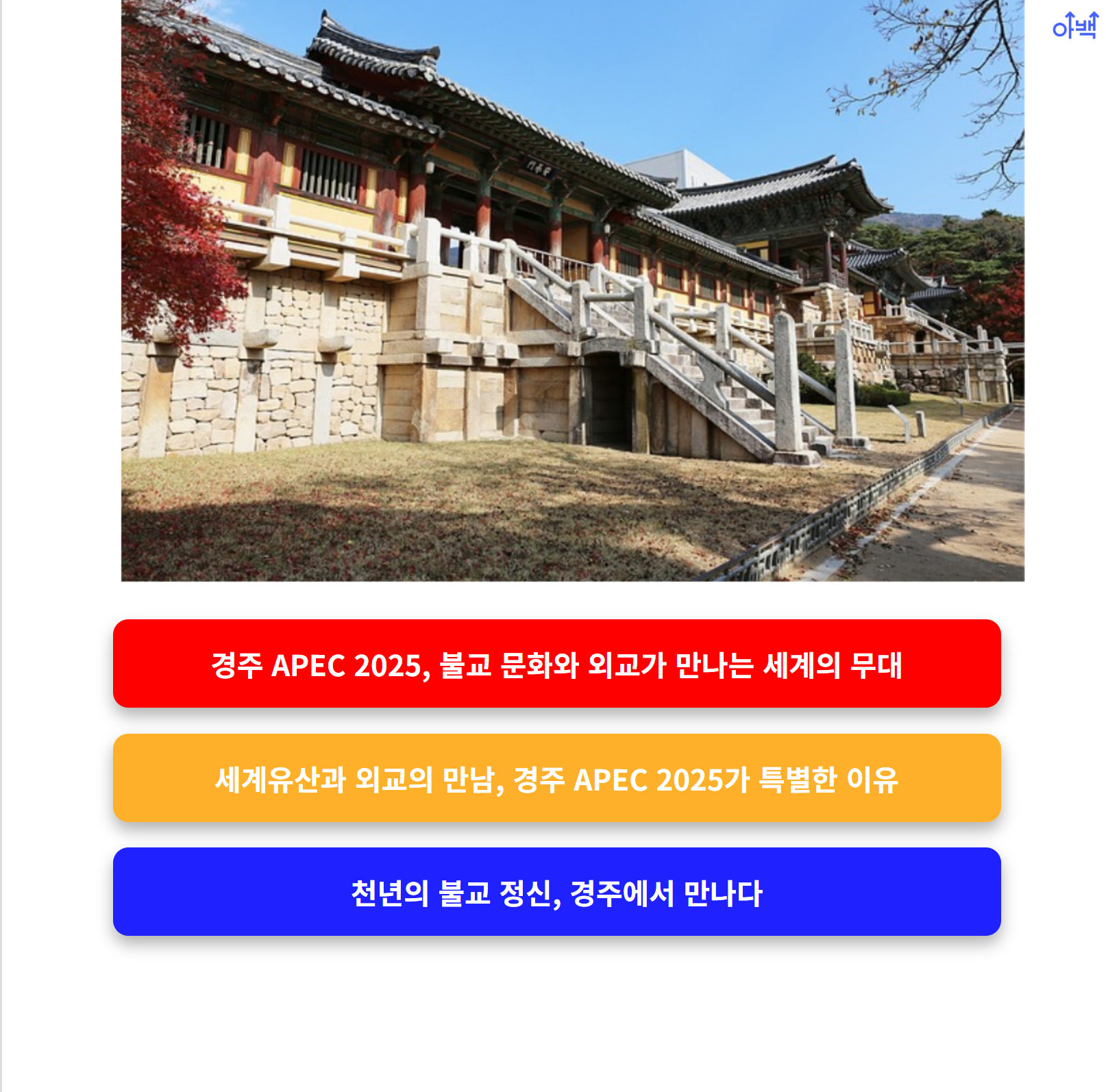 2025년 APEC 정상회의가 한국의 천년 고도, 경주에서 열립니다.
